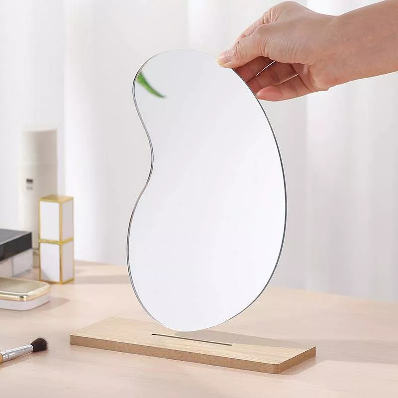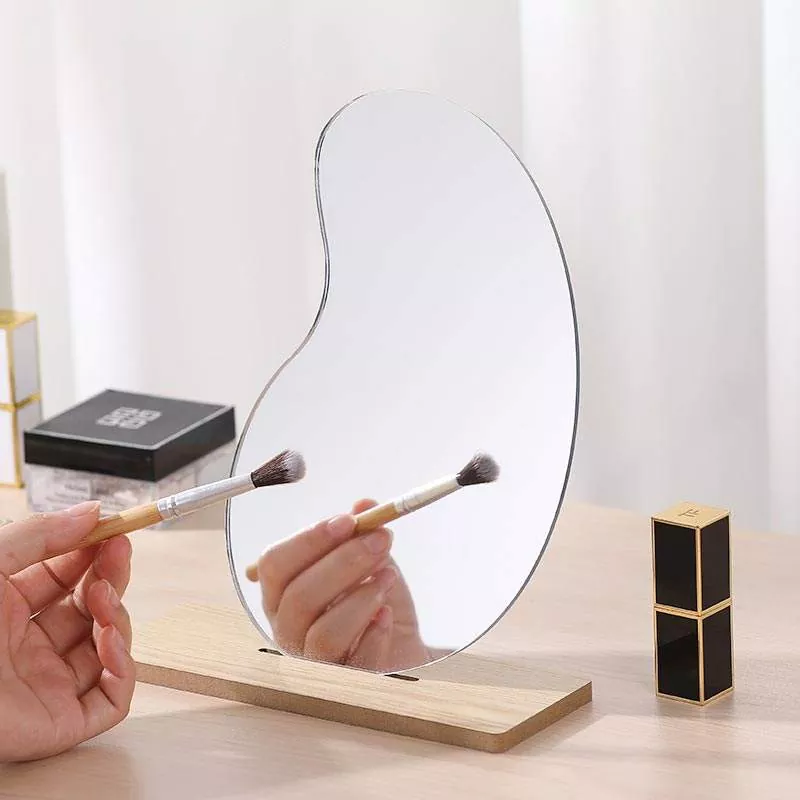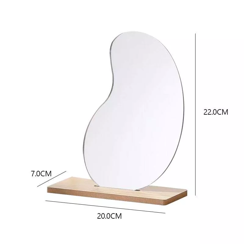 To nieregularne, faliste lustro stołowe ma minimalistyczną, artystyczną sylwetkę, która płynnie komponuje się z nowoczesnym wystrojem domu. Wykonany z przezroczystego szkła o wysokiej rozdzielczości i gładkiej drewnianej podstawy, zapewnia pozbawione zniekształceń odbicie, idealne do wykonywania makijażu, pielęgnacji skóry i codziennej pielęgnacji.